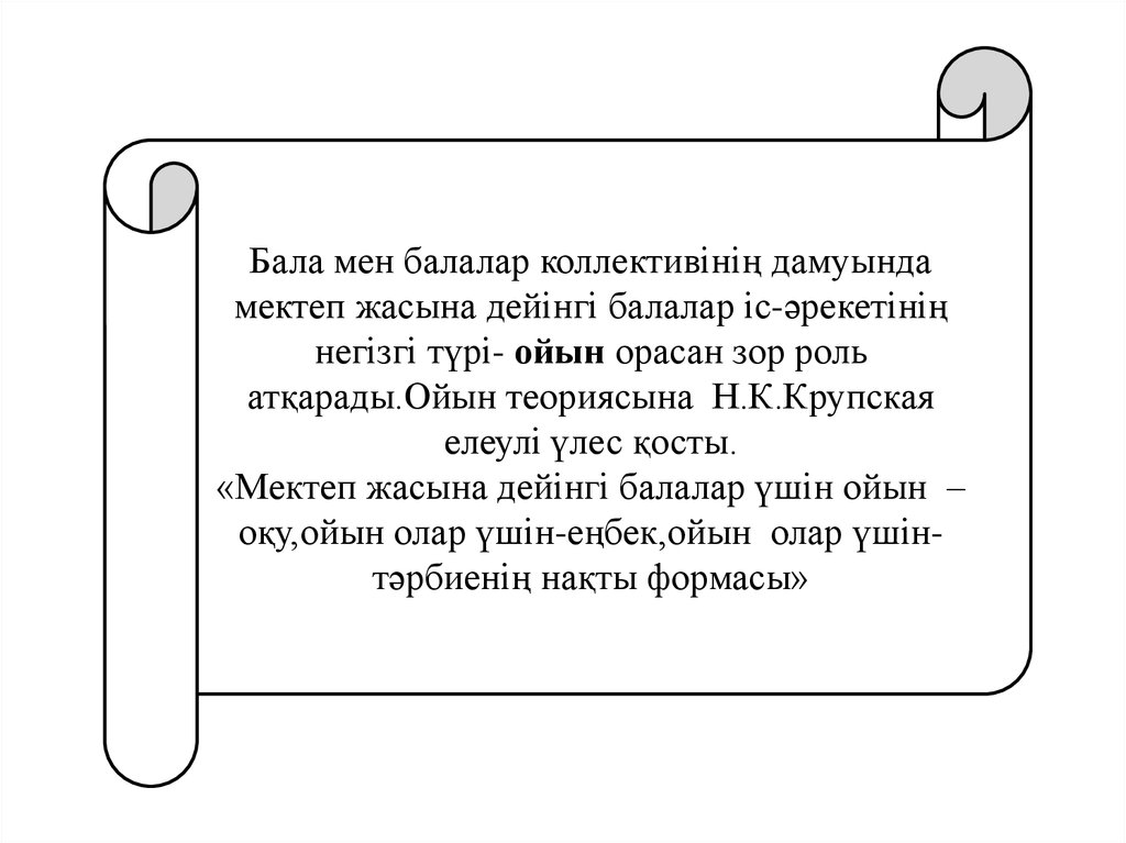 оқу,ойын олар үшін-еңбек,ойын олар үшінтәрбиенің нақты формасы»