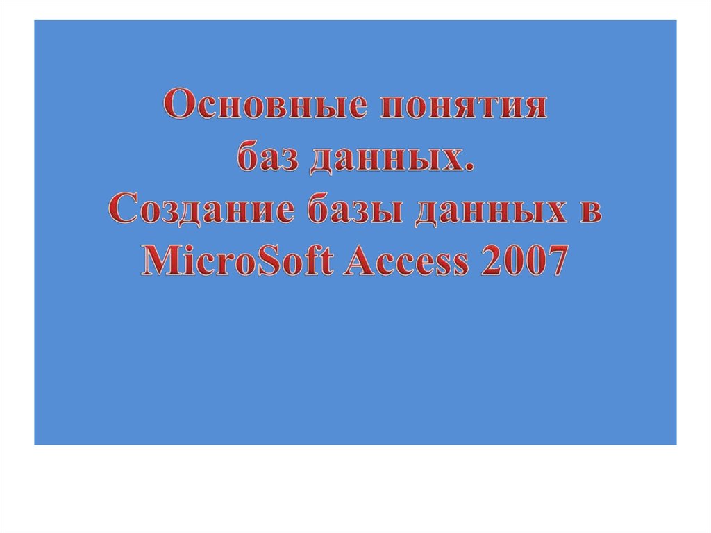 1. Основные понятия баз данных. Создание базы данных в MicroSoft Access 2007