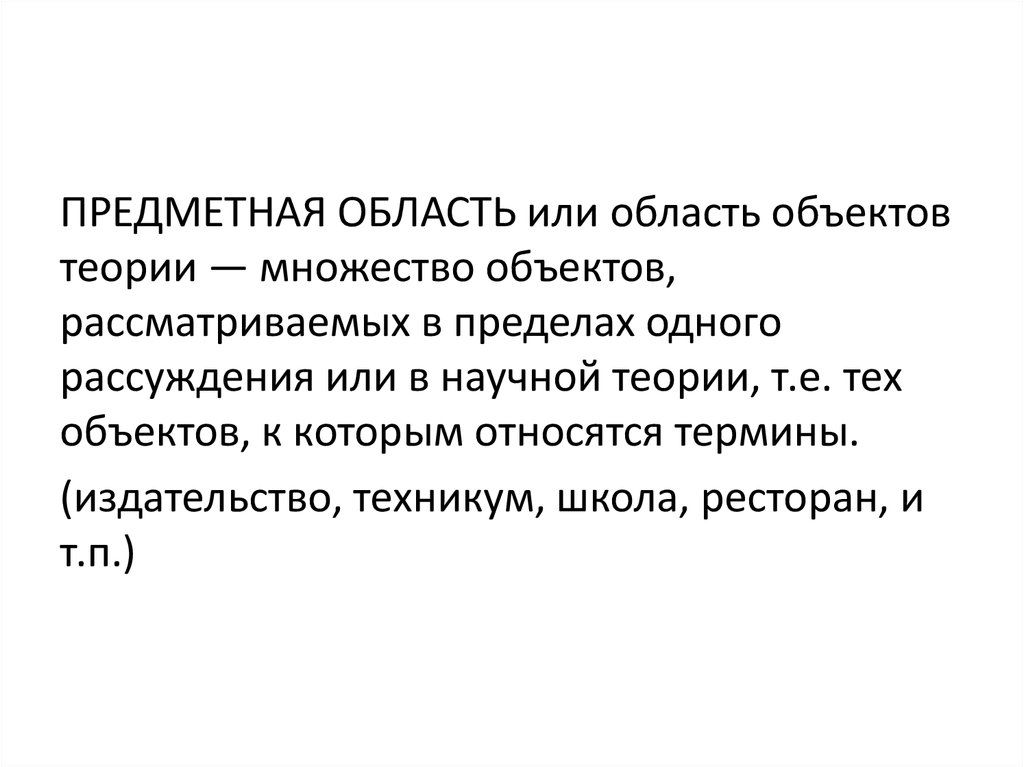 ПРЕДМЕТНАЯ ОБЛАСТЬ или область объектовтеории — множество объектов,