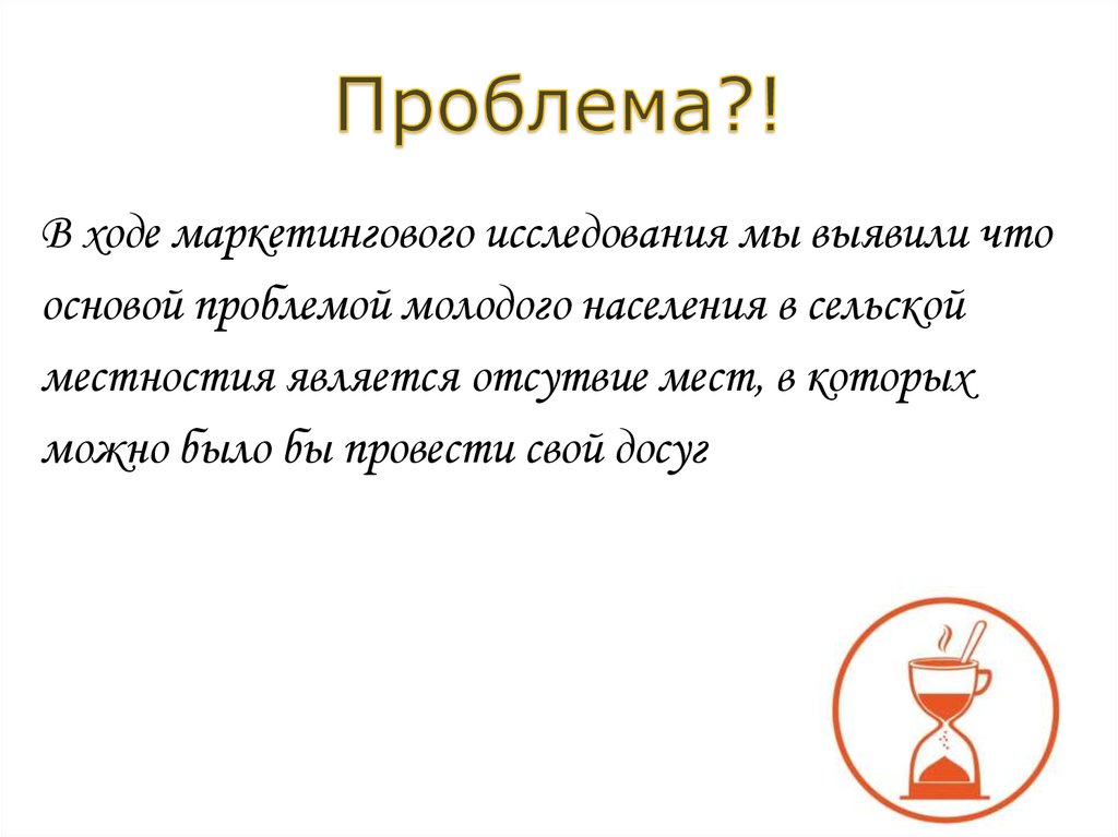 В ходе маркетингового исследования мы выявили чтоосновой проблемой молодого населения в сельской