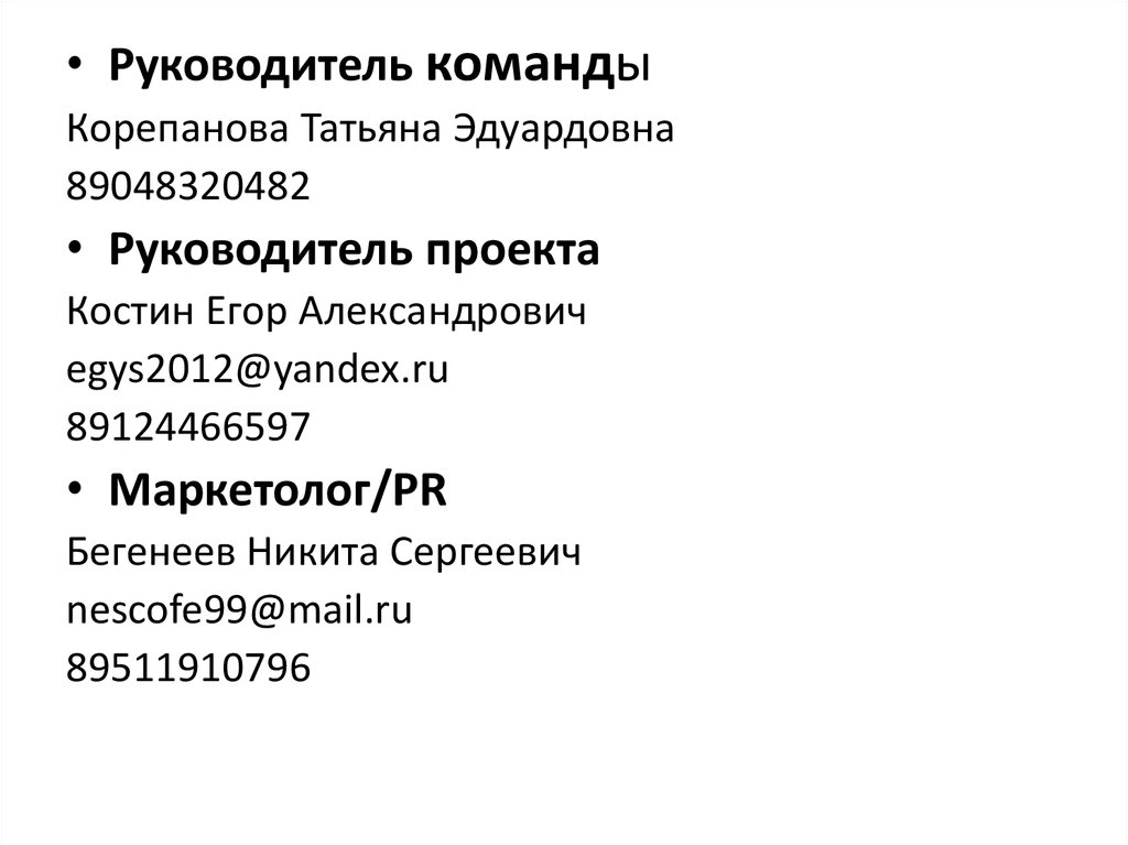 • Руководитель командыКорепанова Татьяна Эдуардовна