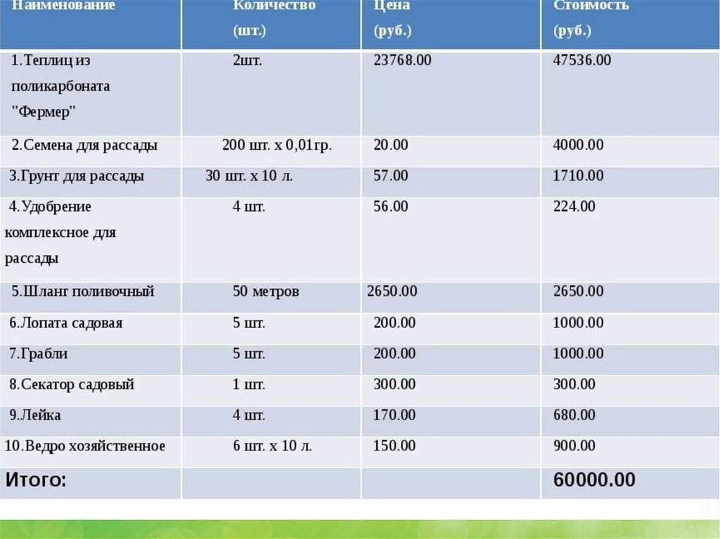 грядки. Данная отрасль имеет