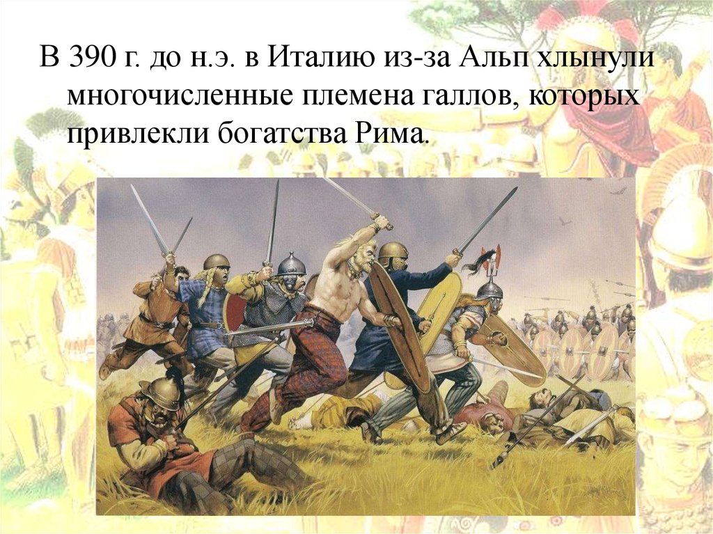 В 390 г. до н.э. в Италию из-за Альп хлынулимногочисленные племена галлов, которых