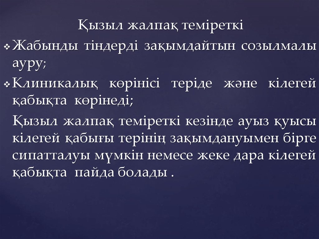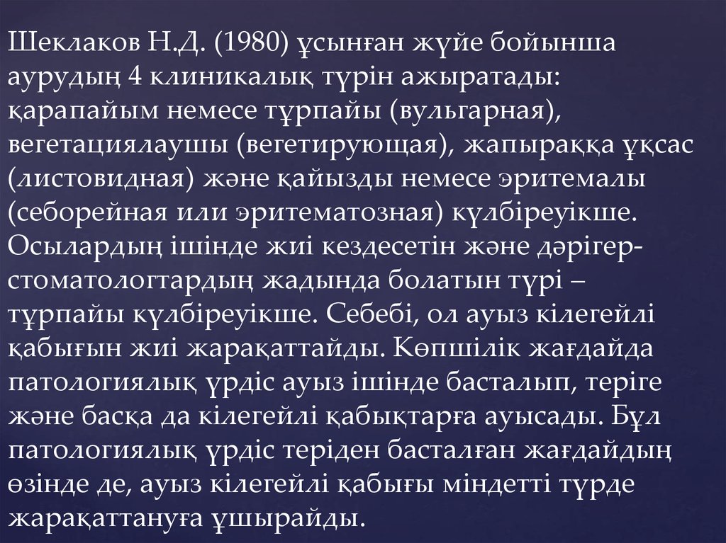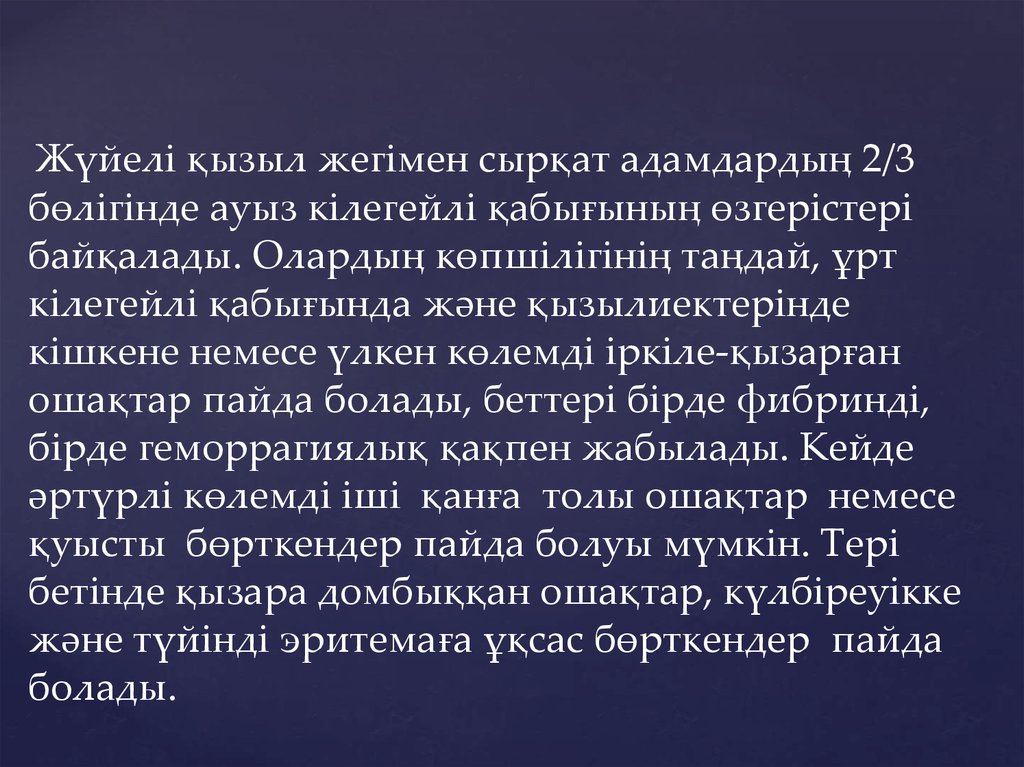1. Тақырыбы: Дерматоздардың ауыз қуысындағы көрінісі. Қызыл жалпақ теміреткі,қызыл жегі, күлбіреуік. Этиологиясы, патогенезі, клиникасы, диаг