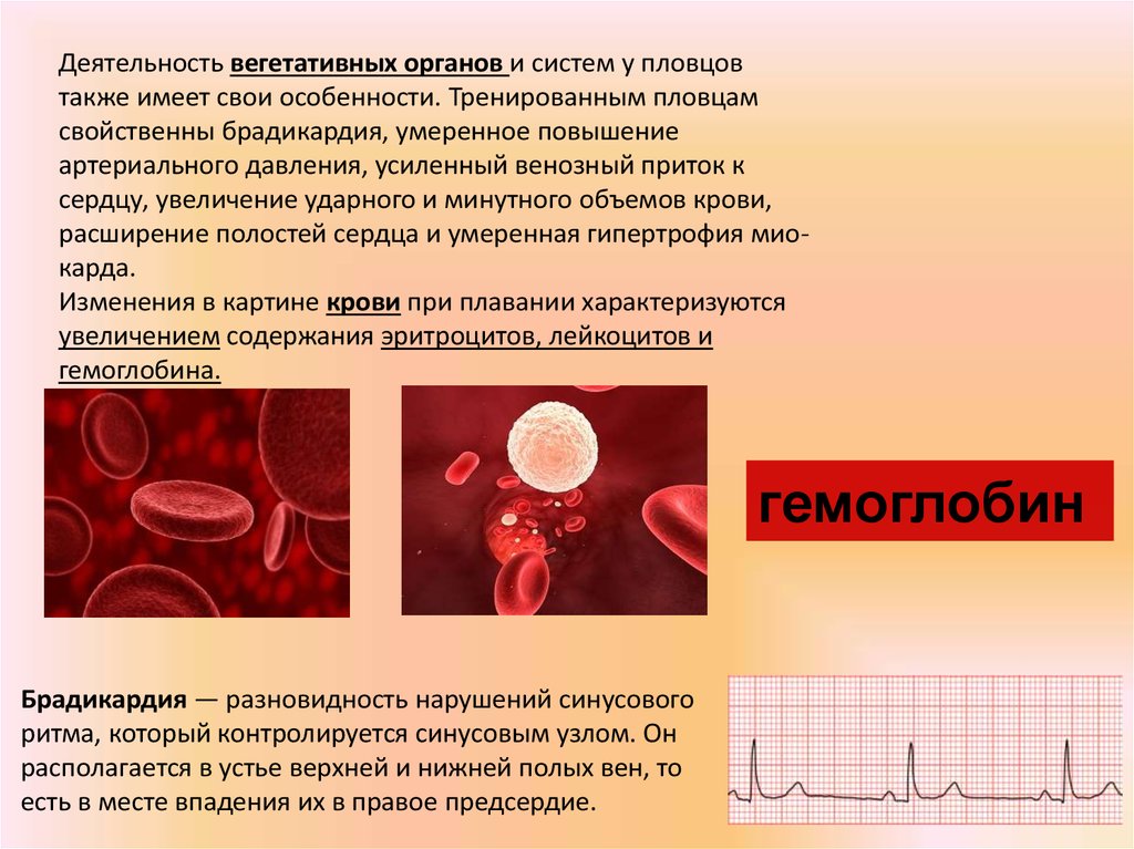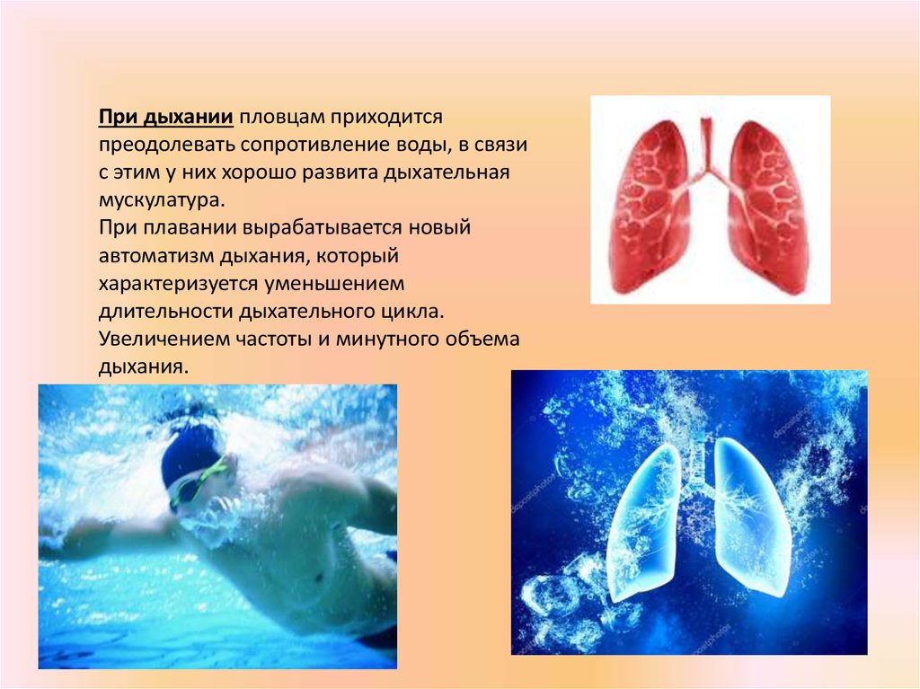 Деятельность вегетативных органов и систем у пловцовтакже имеет свои особенности. Тренированным пловцам