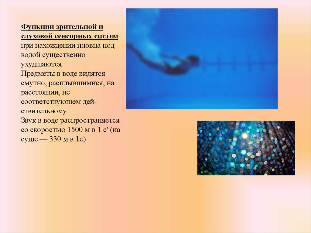 Теплоемкость воды в 25раз, а ее теплопроводность в 5раз больше, чемвоздуха. Поэтому длительное пребывание пловцов даже в относительно