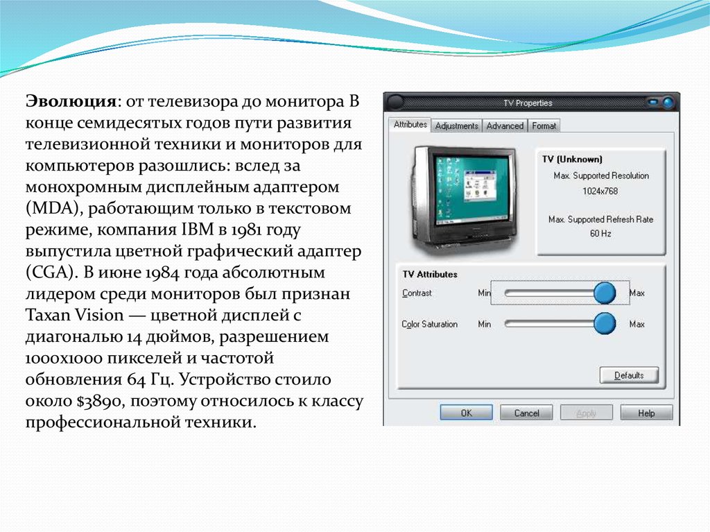 Эволюция: от телевизора до монитора Вконце семидесятых годов пути развития