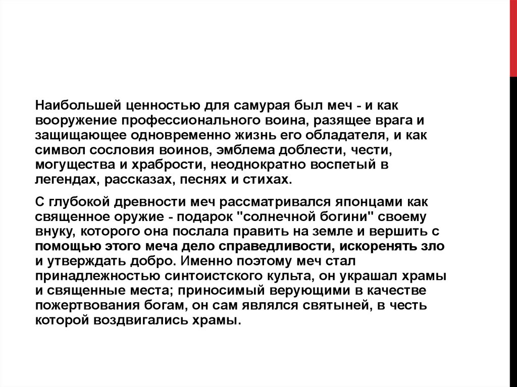 Наибольшей ценностью для самурая был меч - и каквооружение профессионального воина, разящее врага и