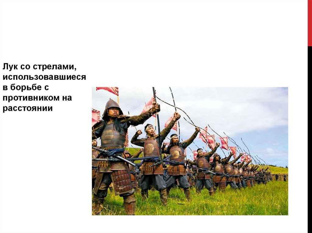 Одним из древнейших видоворужия были лук и стрелы.