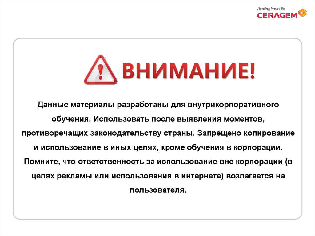 Данные материалы разработаны для внутрикорпоративногообучения. Использовать после выявления моментов,