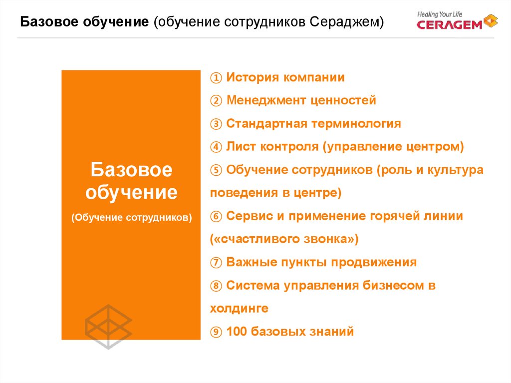 Базовое обучение (обучение сотрудников Сераджем)① История компании