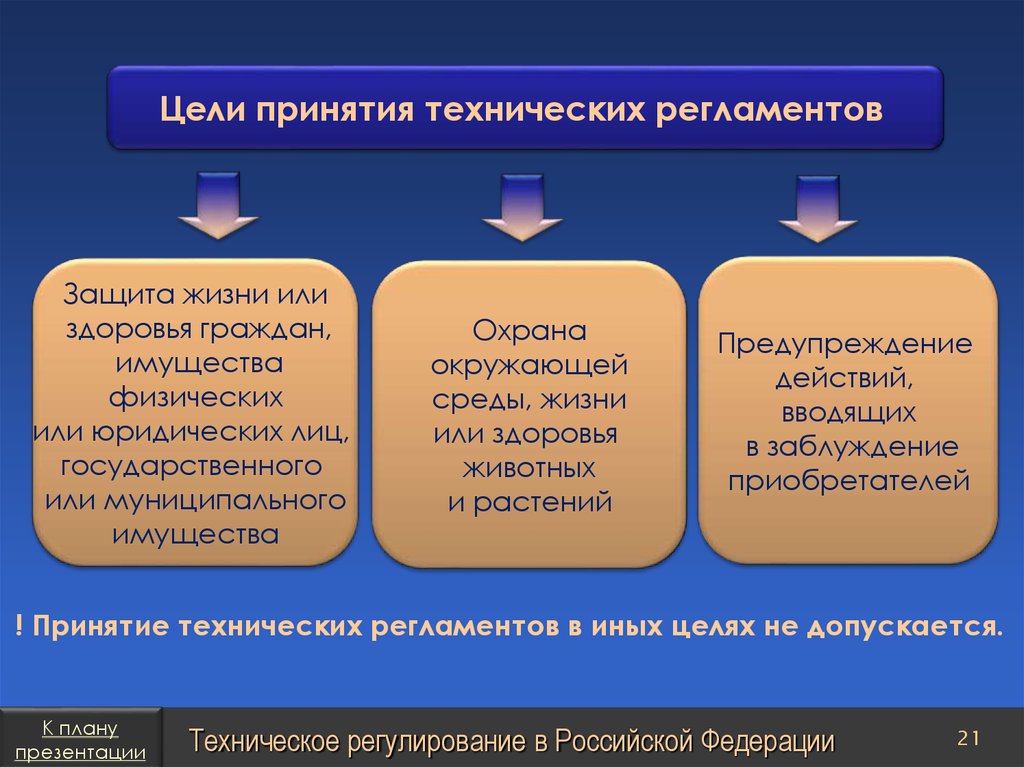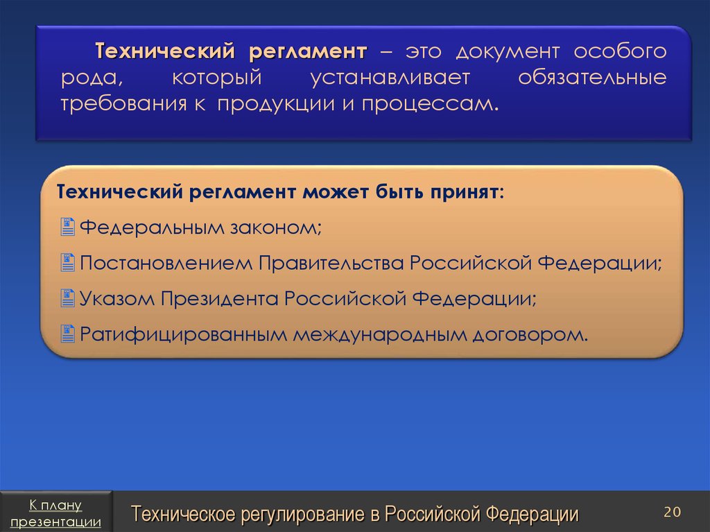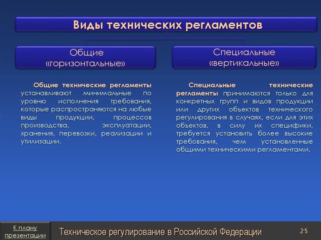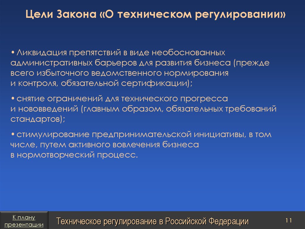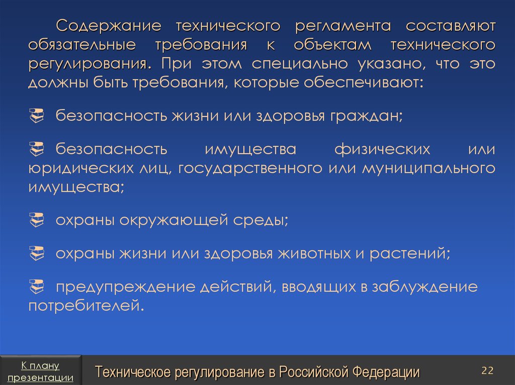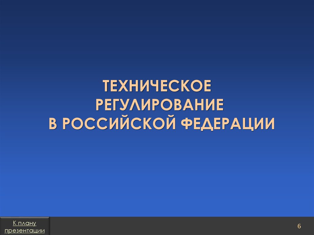План презентацииТехническое регулирование в Российской Федерации