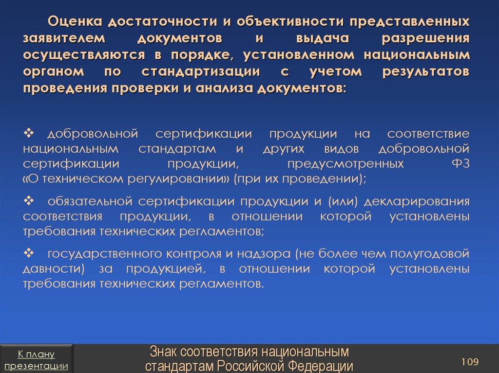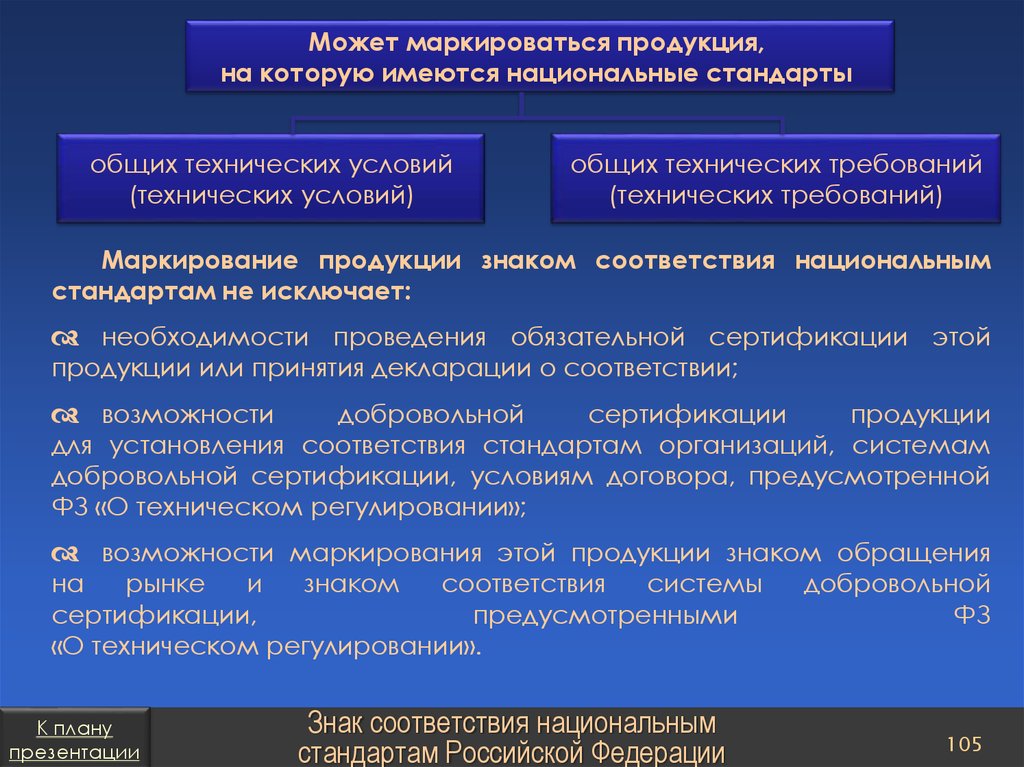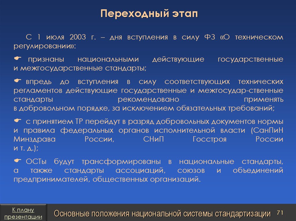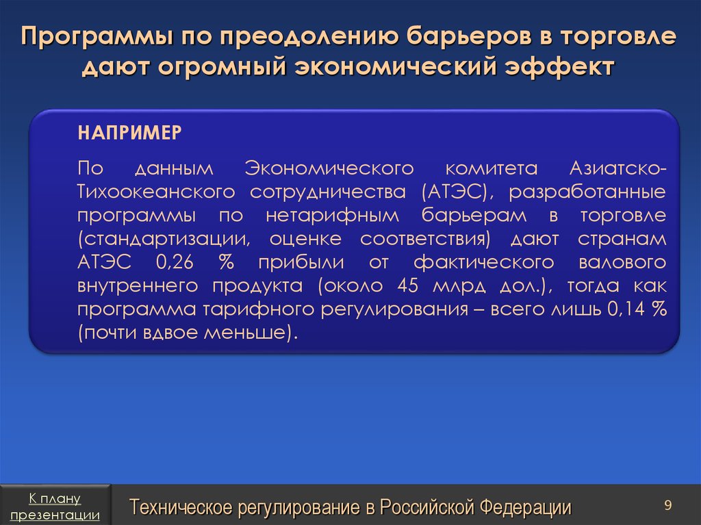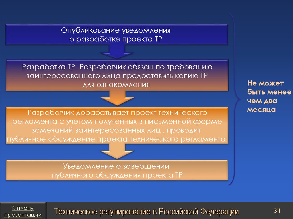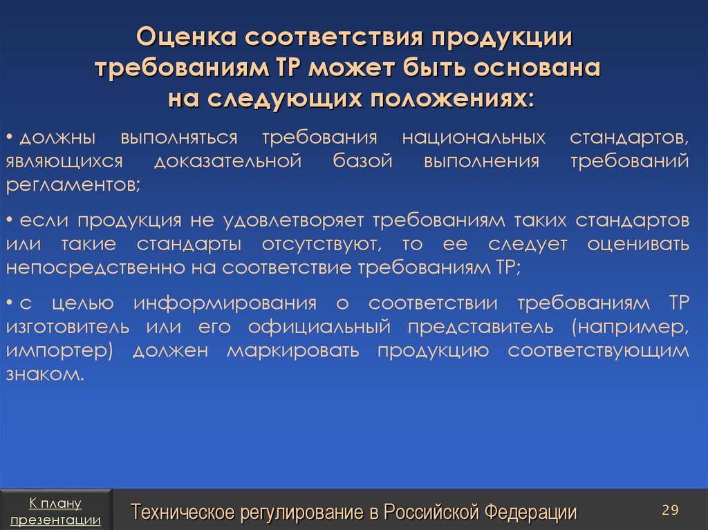 План презентацииТехническое регулирование в Российской Федерации