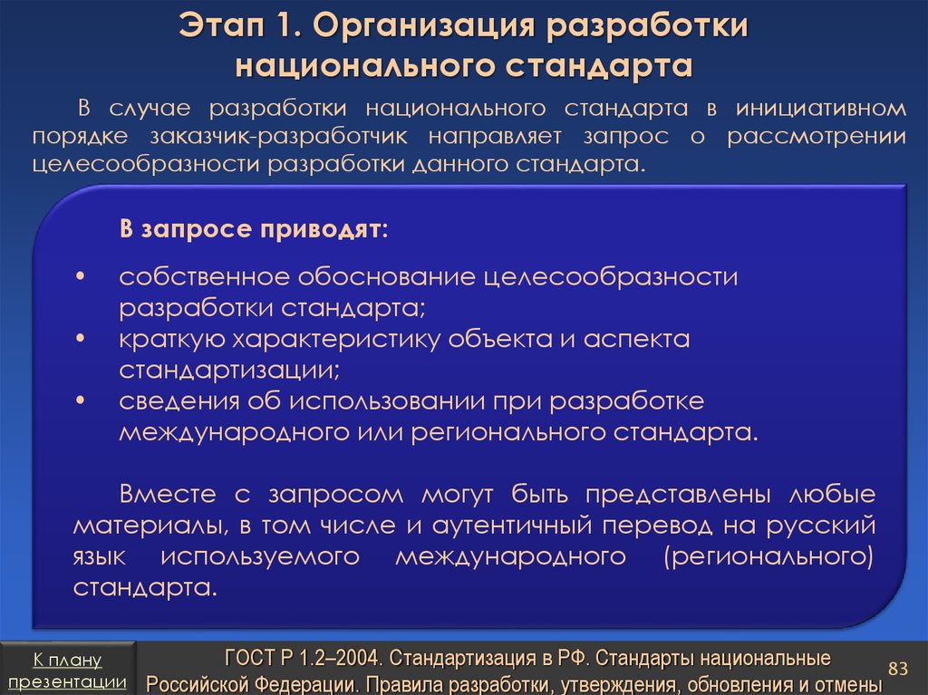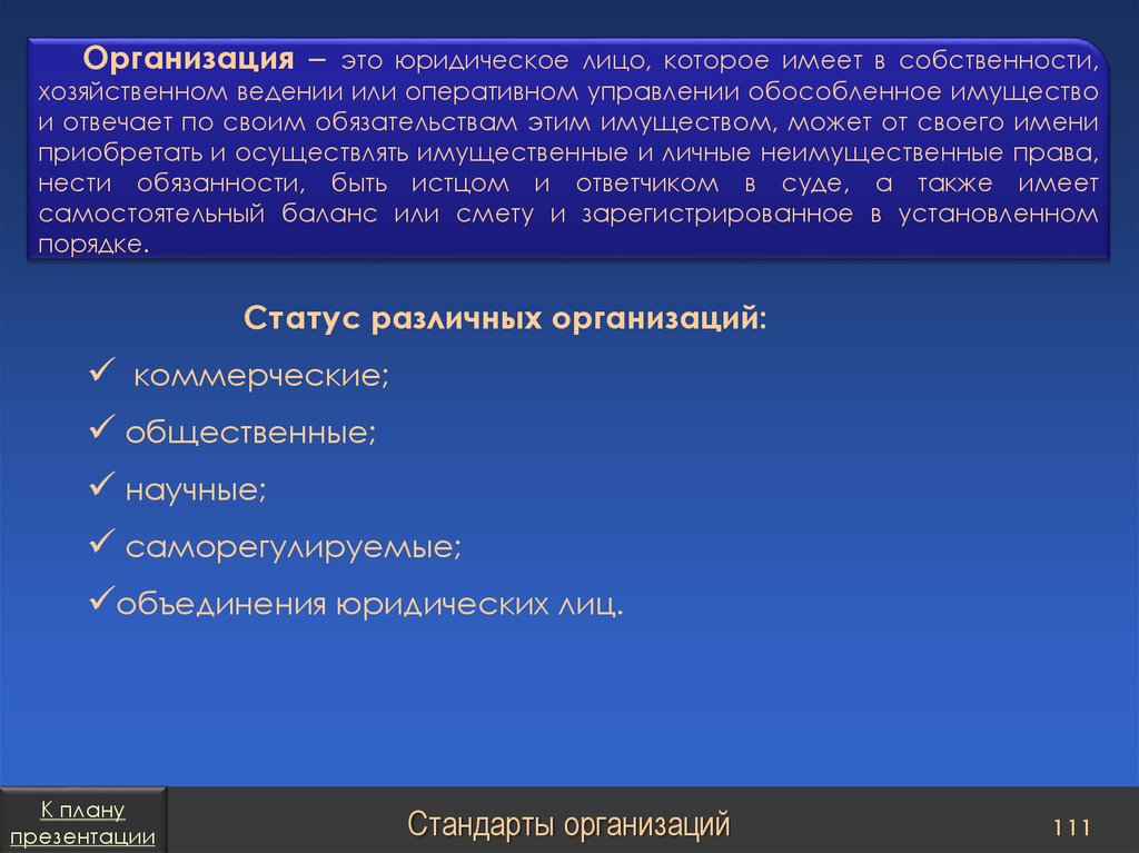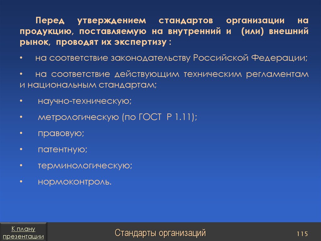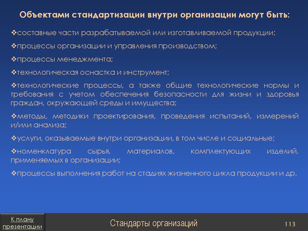 План презентацииСтандарты организаций