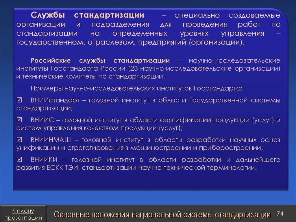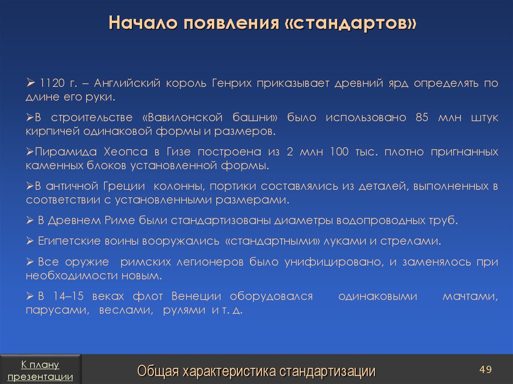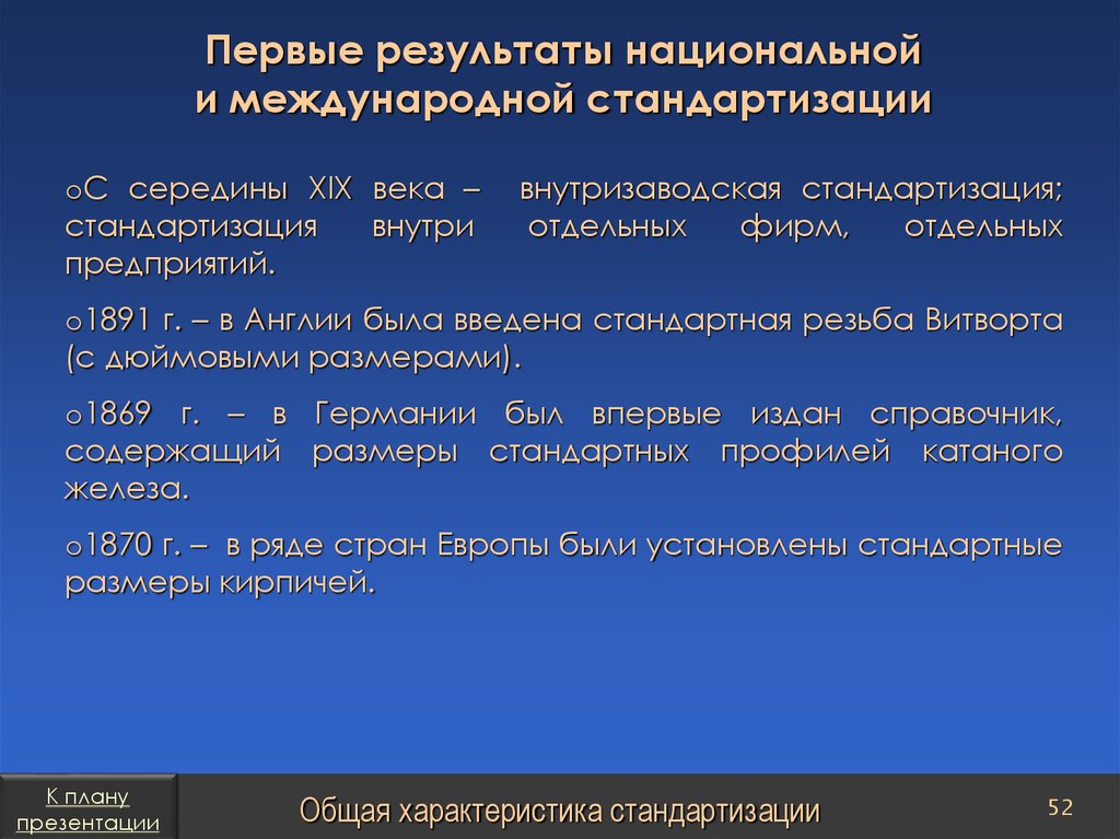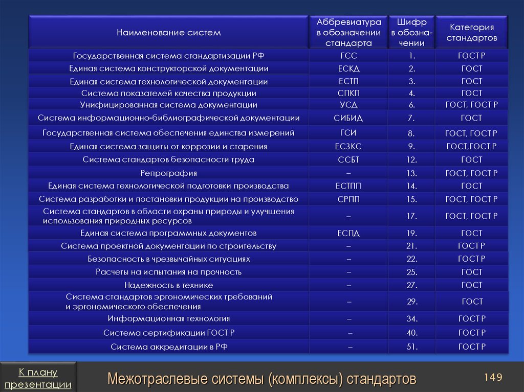 План презентацииСтандарты организаций