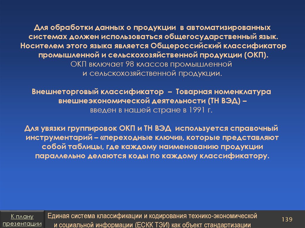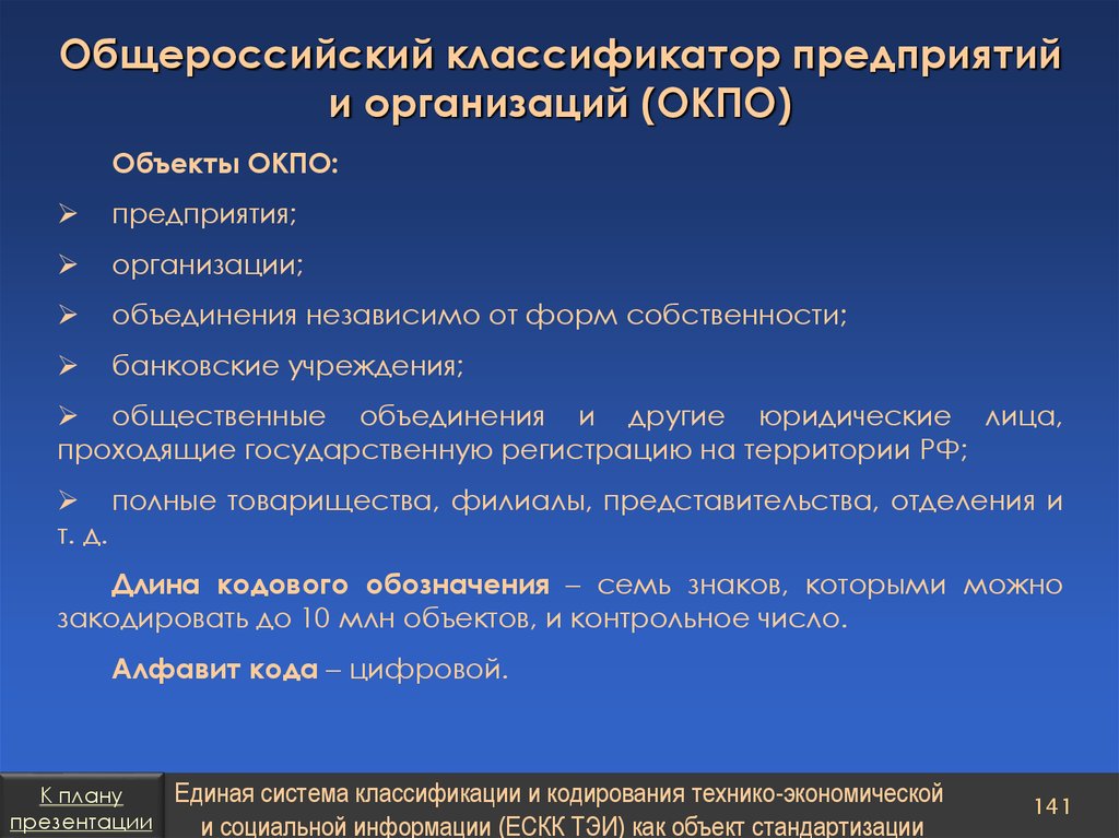 Единая система классификации и кодирования техникоэконо-мической и социальной информации как объект