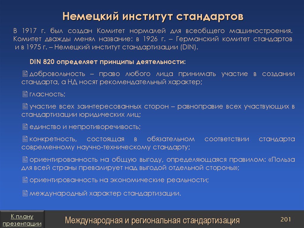 DIN 820 определяет принципы деятельности: