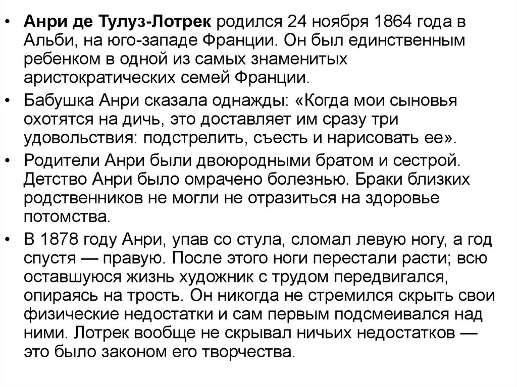 • Один из друзей Тулуз-Лотрека вспоминал, что «он обладал