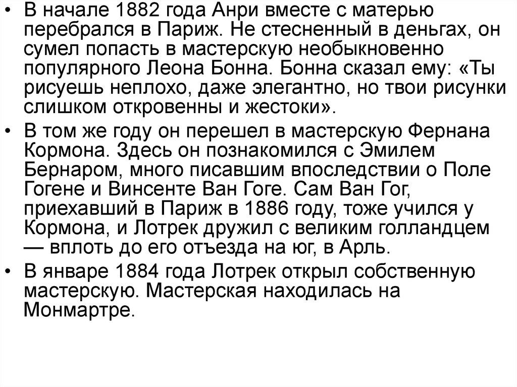 • Денег Лотреку хватало, но он мечтал о художнической