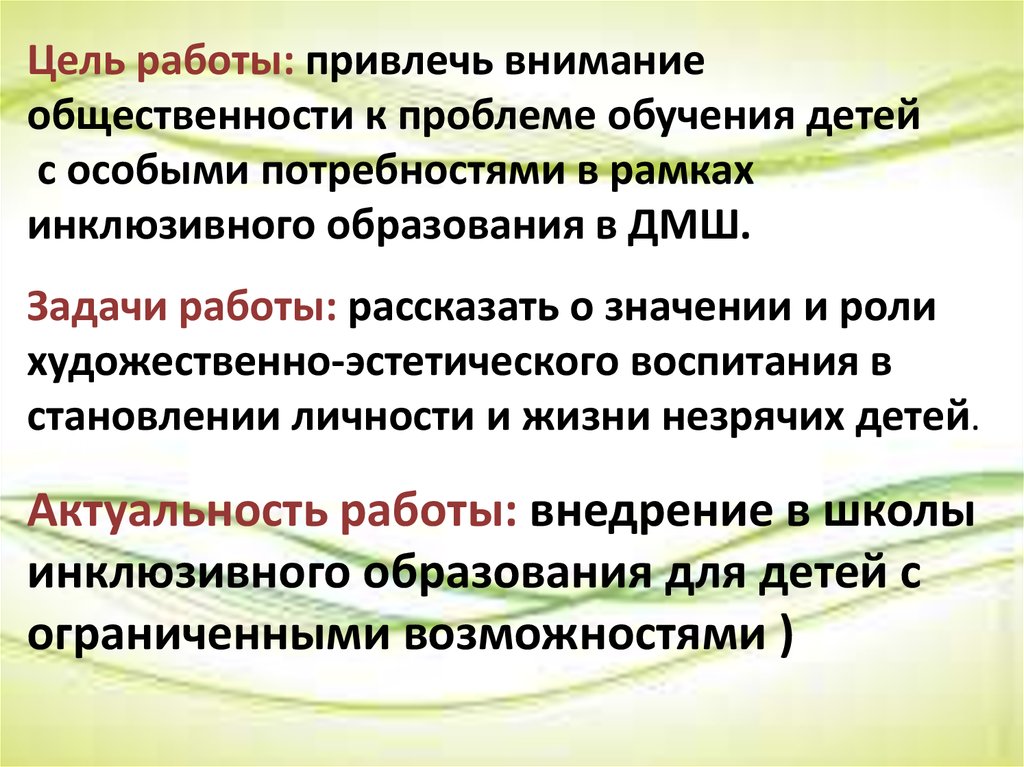 2. Исследовательская работа на тему: История и роль художественно-эстетического воспитания в жизни детей - инвалидов по зрению.