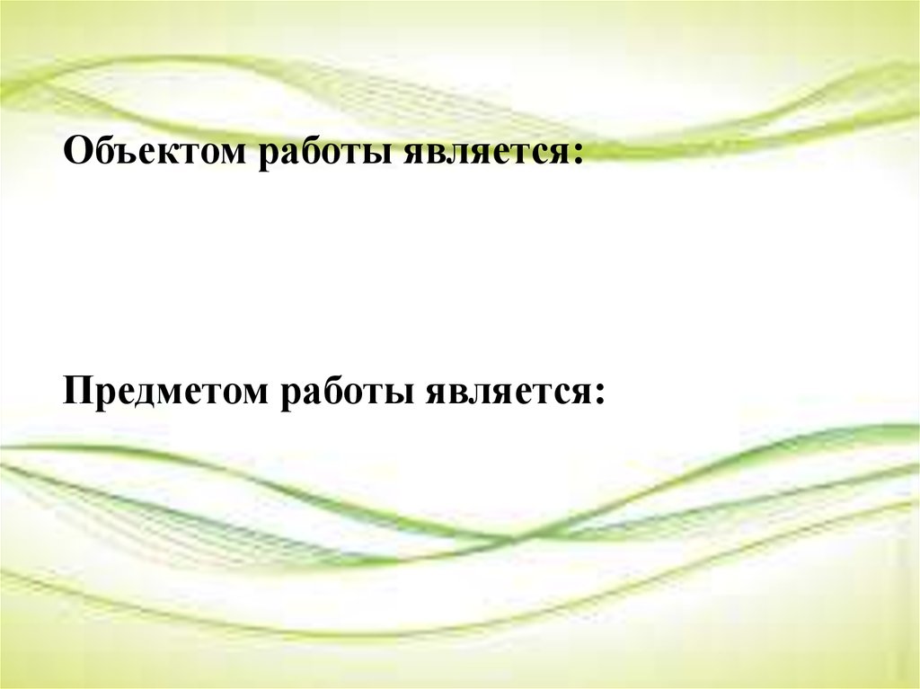 Объектом работы является:Предметом работы является:
