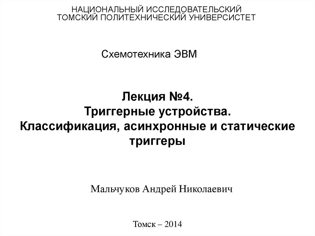 1. Лекция №4. Триггерные устройства. Классификация, асинхронные и статические триггеры