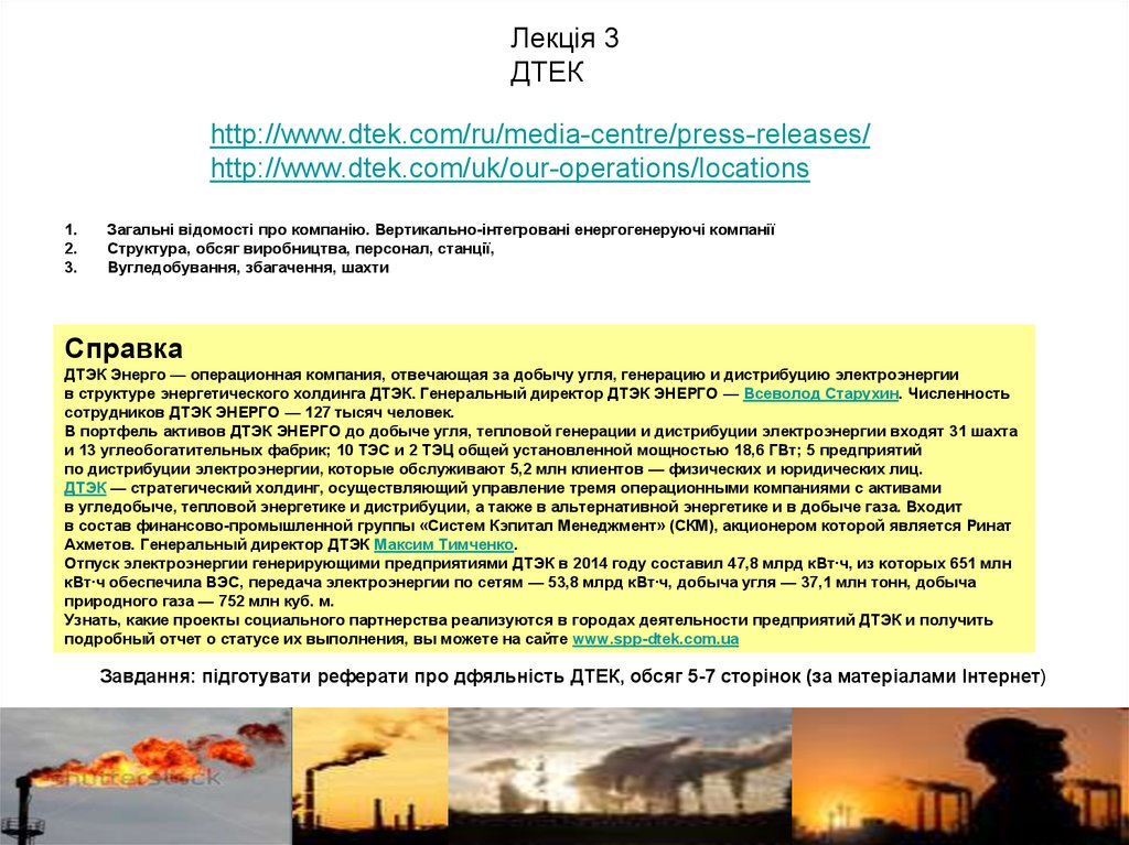 Завдання: підготувати реферати про дфяльність ДТЕК, обсяг 5-7 сторінок (за матеріалами Інтернет)