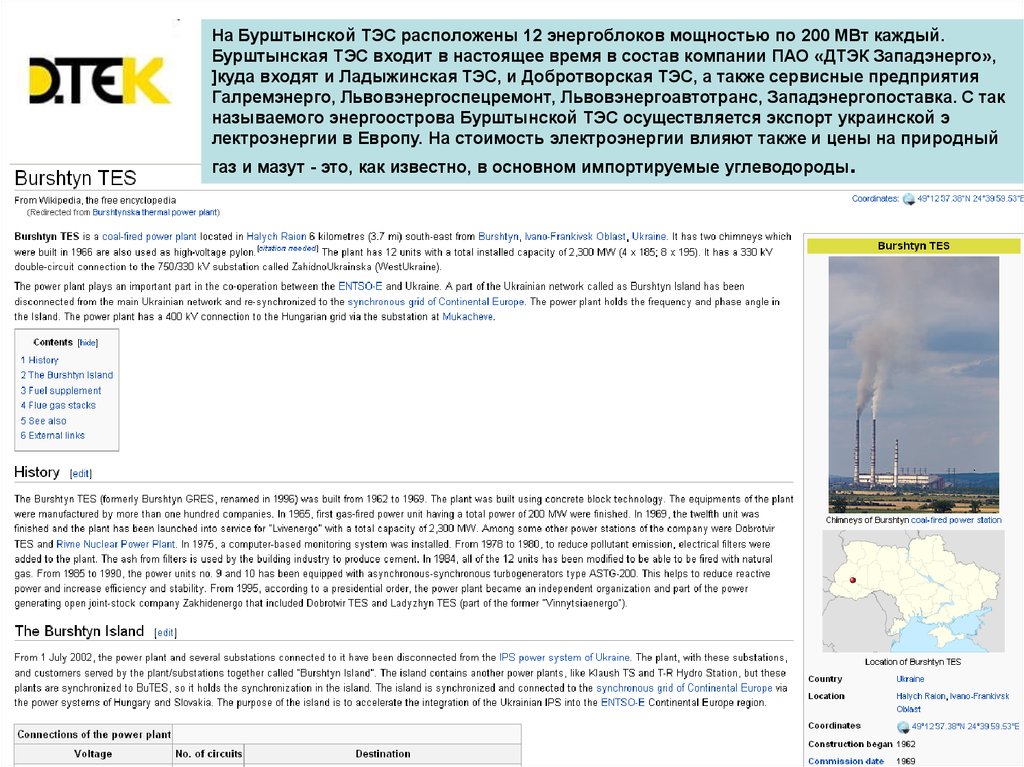 называемого энергоострова Бурштынской ТЭС осуществляется экспорт украинской э