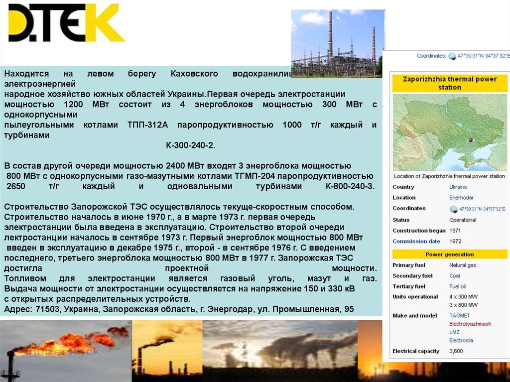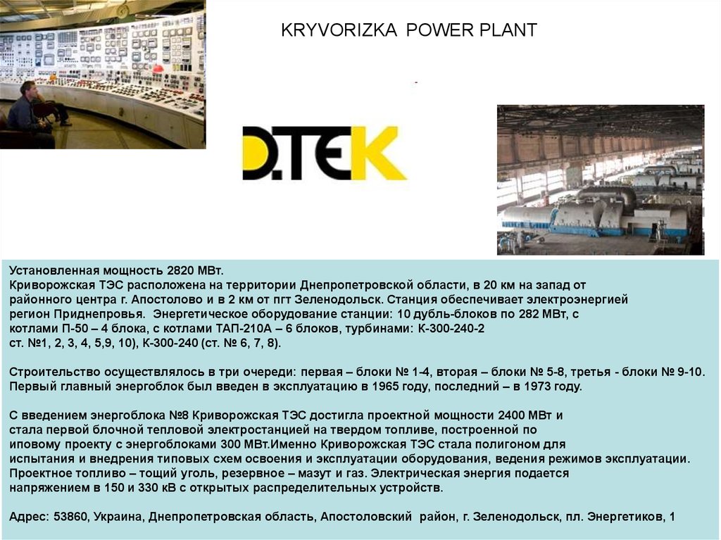 KRYVORIZKA POWER PLANTУстановленная мощность 2820 МВт.