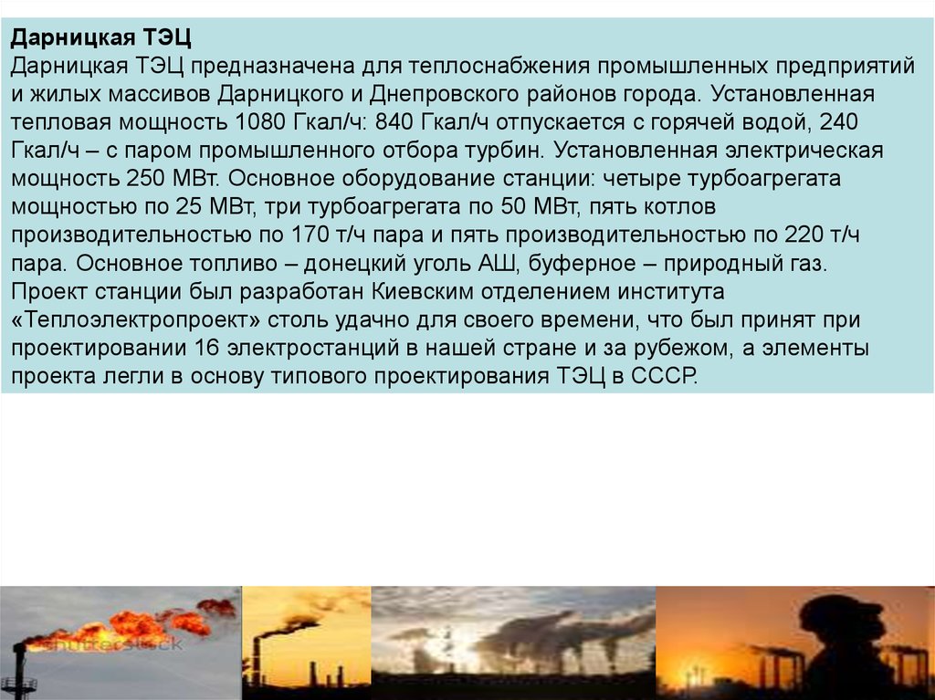Дарницкая ТЭЦДарницкая ТЭЦ предназначена для теплоснабжения промышленных предприятий