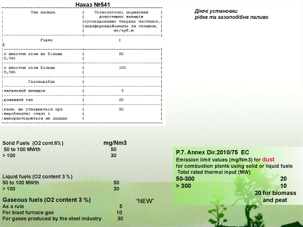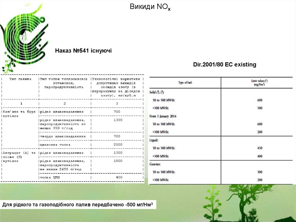 Для рідкого та газоподібного палив передбачено -500 мг/Нм3