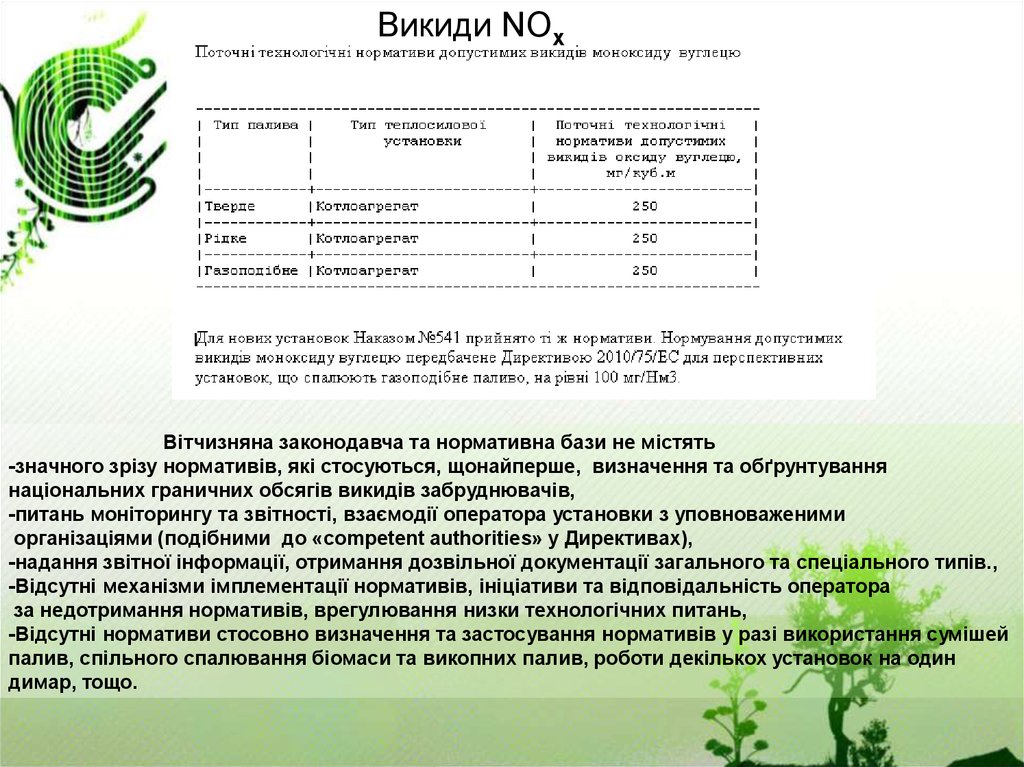 Викиди NOxВітчизняна законодавча та нормативна бази не містять