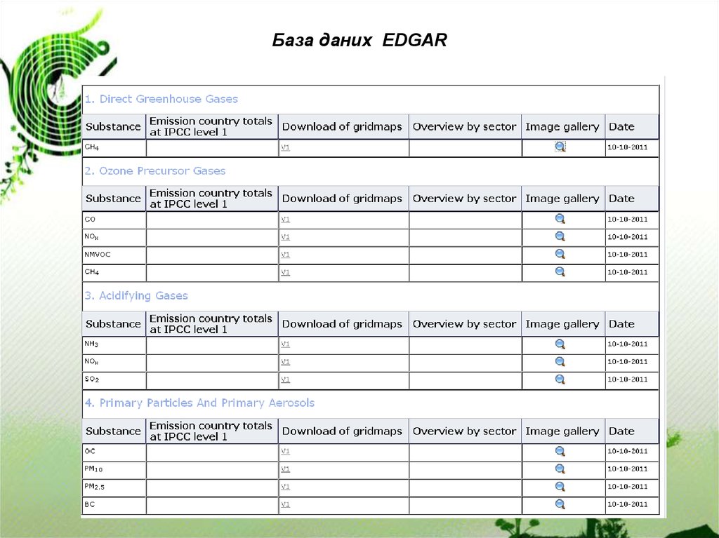 даних з атмосферних викидів та досліджень світової атмосфери.