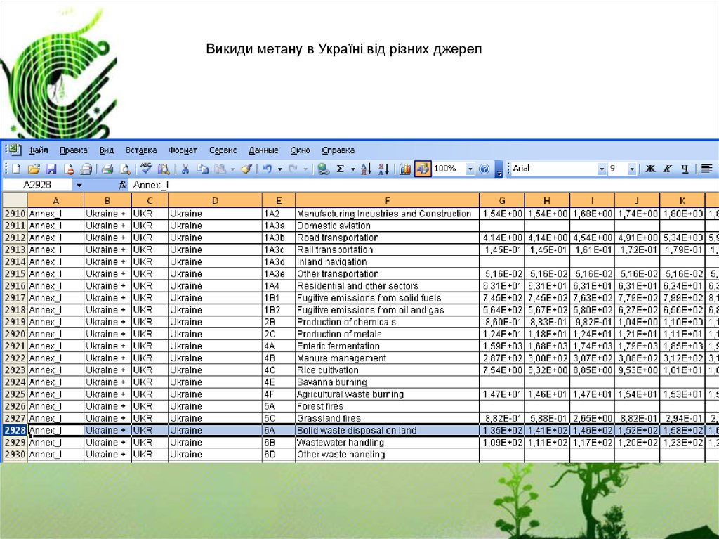діяльності у межах 9 секторів економіки, включаючи енергетику. Викиди групуються по 7