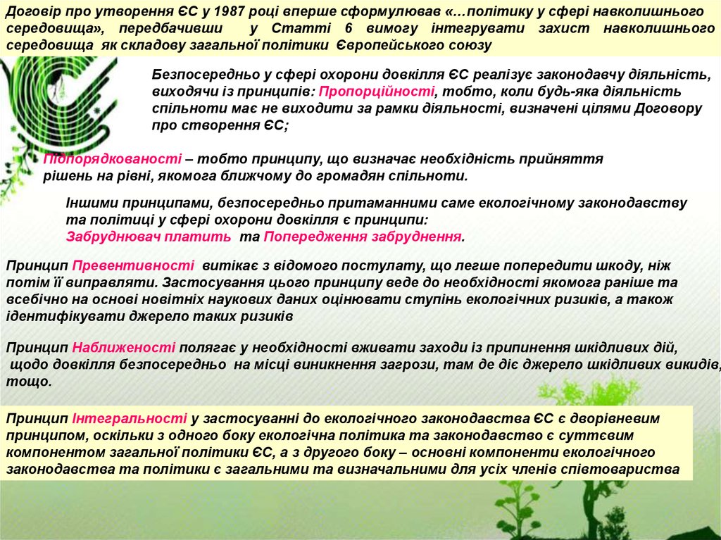 принципом, оскільки з одного боку екологічна політика та законодавство є суттєвим