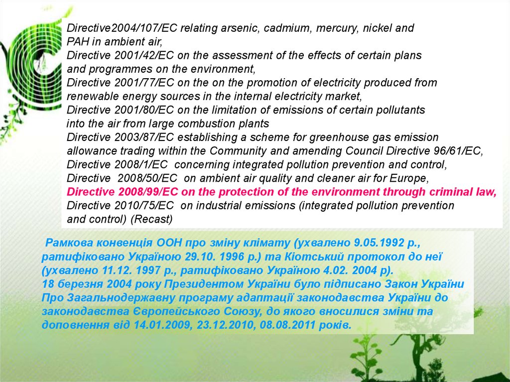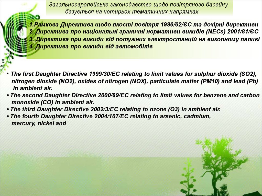 1.Рамкова Директива щодо якості повітря 1996/62/ЄС та дочірні директиви