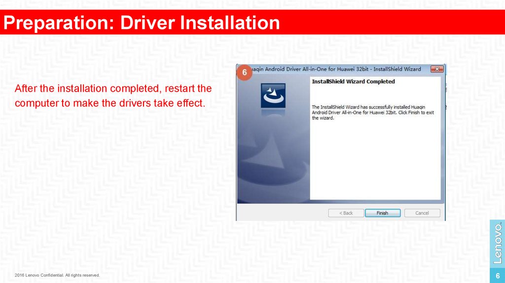 Preparation: Driver InstallationAfter the installation completed, restart the