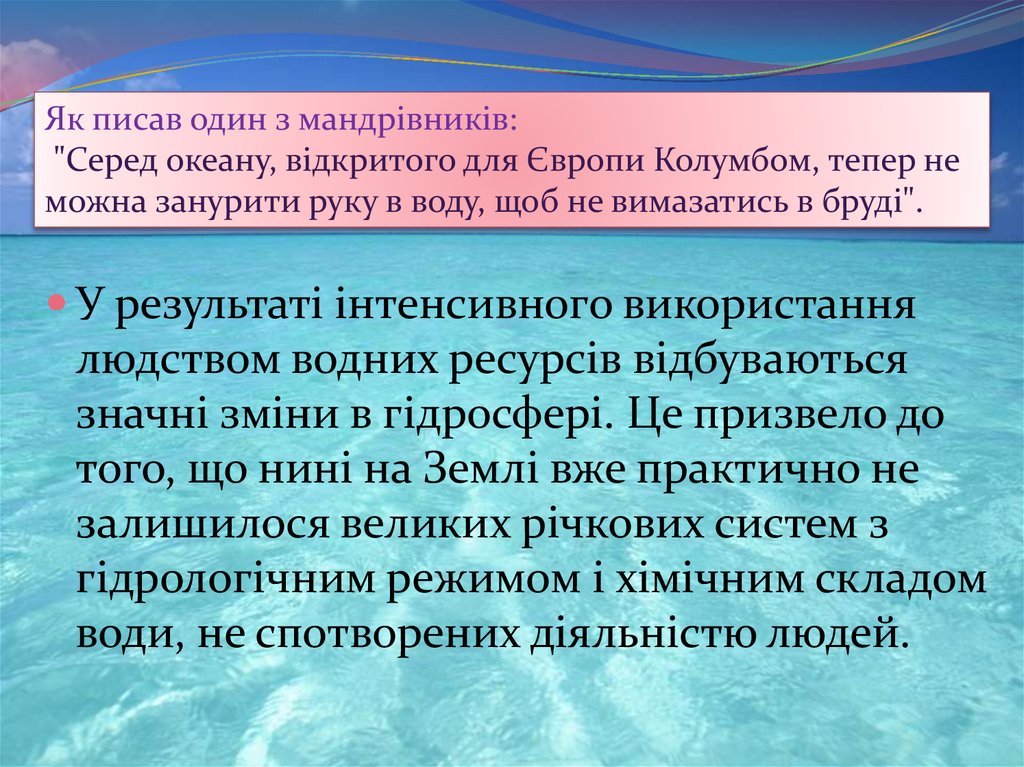 сучасному забрудненні морів і океанів.
