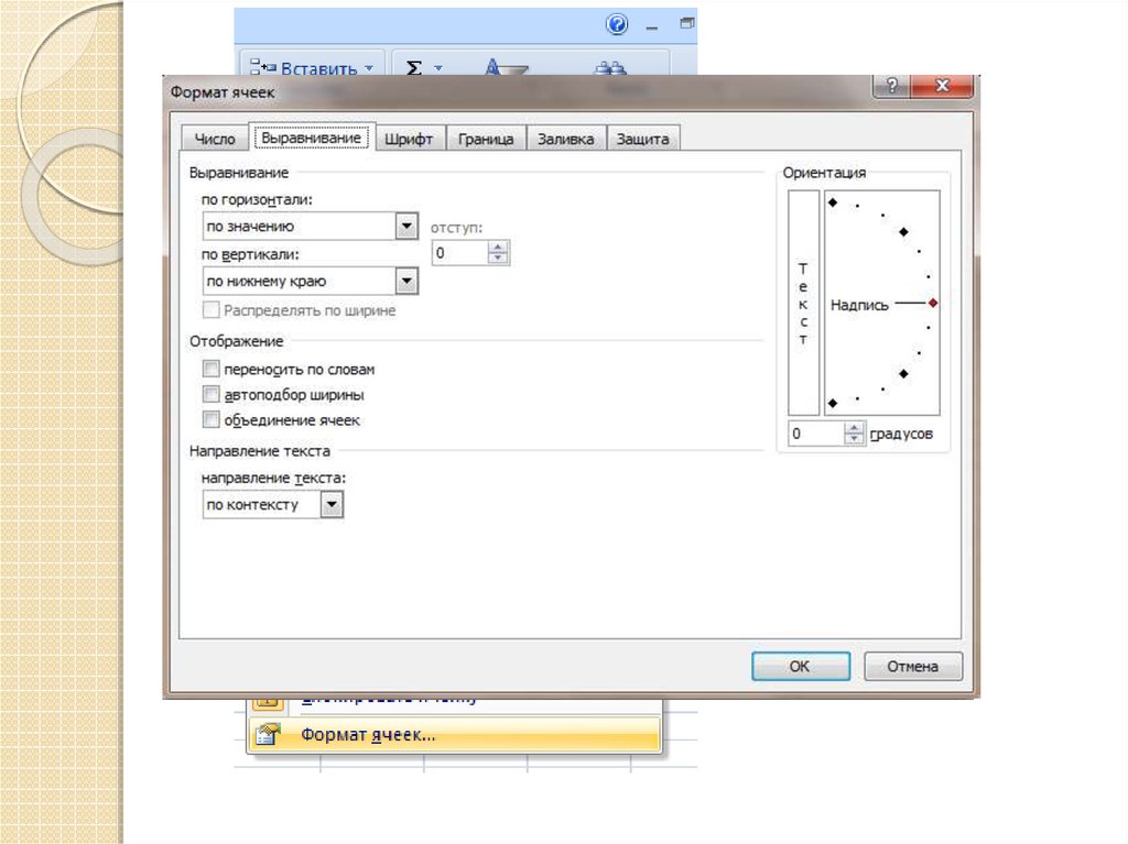 Ұяшық(ячейка) командасын таңдап,сәйкес