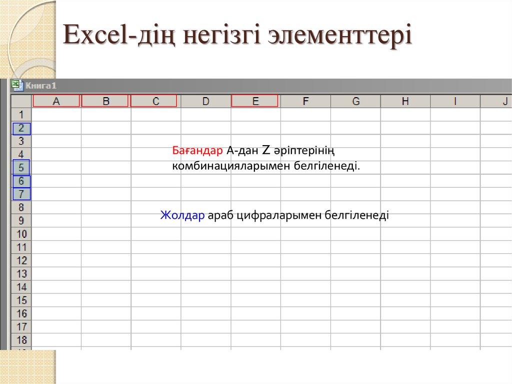 Excel-дің негізгі элементтеріБағандар А-дан Z әріптерінің
