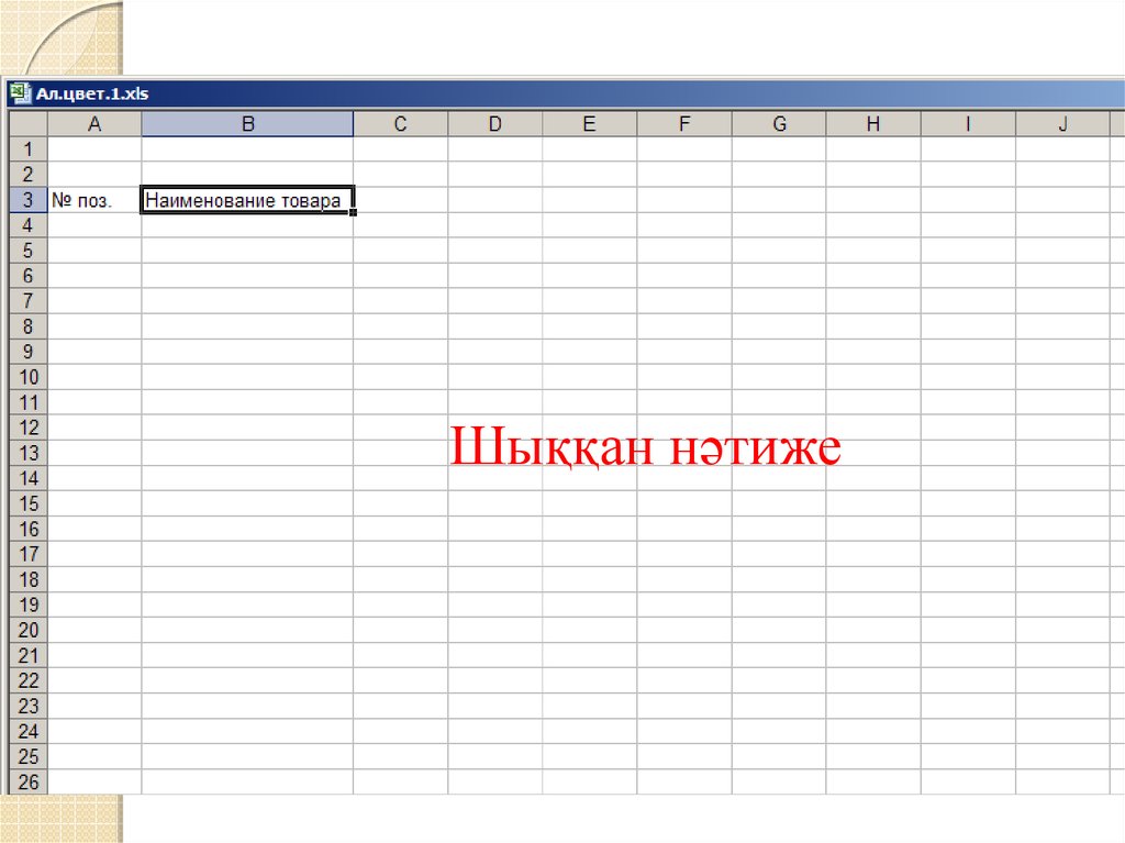 Егер жұмыс ұяшығына сөз сыймай жатқанжағдайда,жоғарыда көрсетілген белгіні оңға қарай сөз