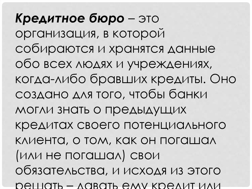 Кредитное бюро – этоорганизация, в которой
