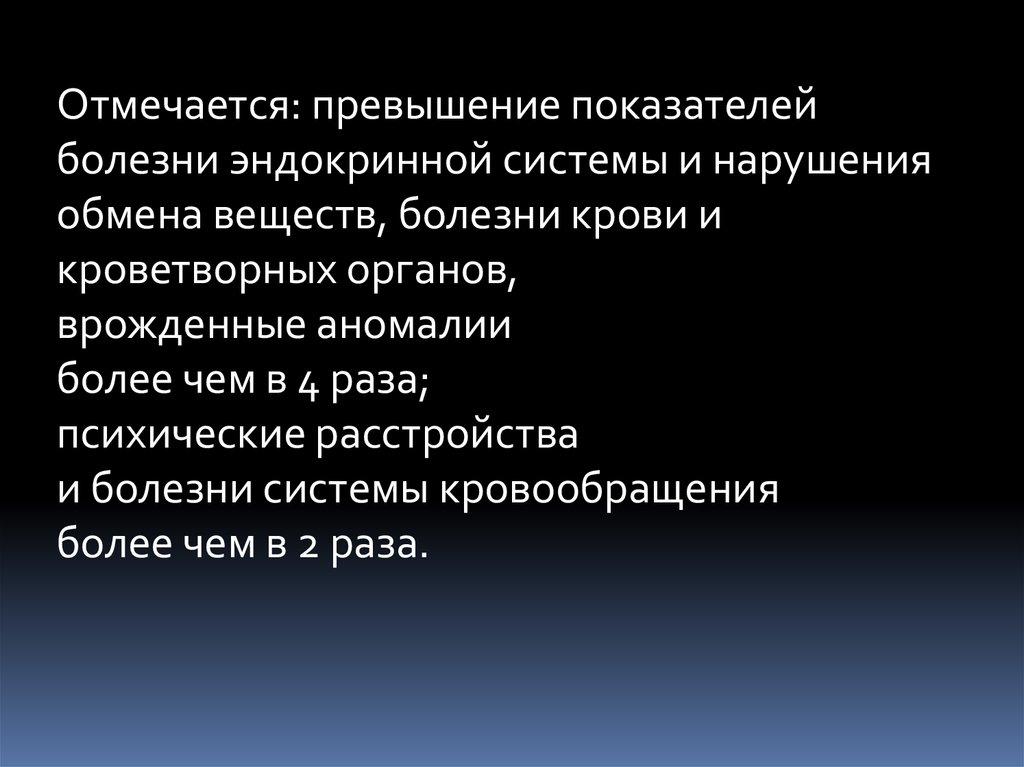 Отмечается: превышение показателейболезни эндокринной системы и нарушения