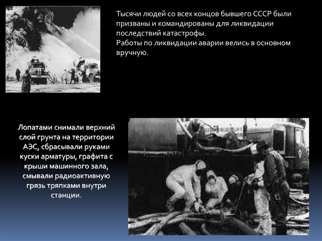 Тысячи людей со всех концов бывшего СССР былипризваны и командированы для ликвидации