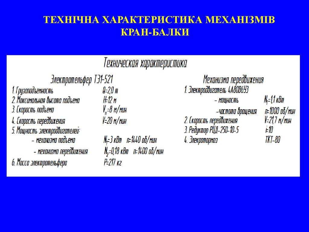 ТЕХНІЧНА ХАРАКТЕРИСТИКА МЕХАНІЗМІВКРАН-БАЛКИ
