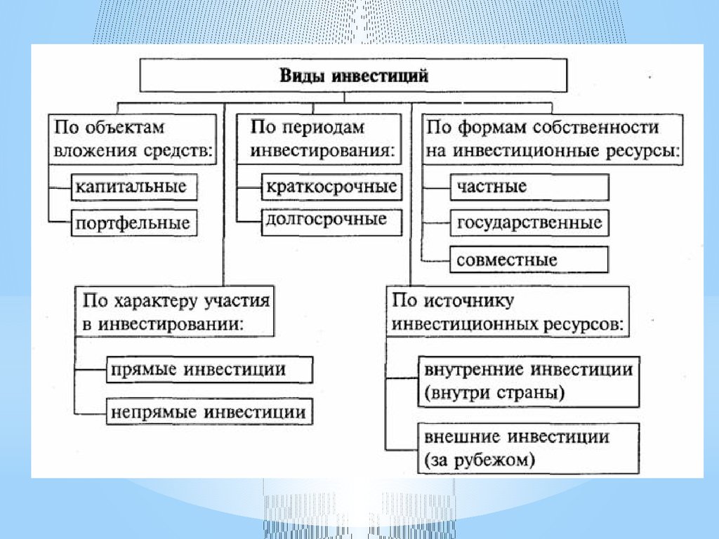 Инвестиции — это средства или любое другое имущество,вкладываемое в объекты предпринимательской деятельности в