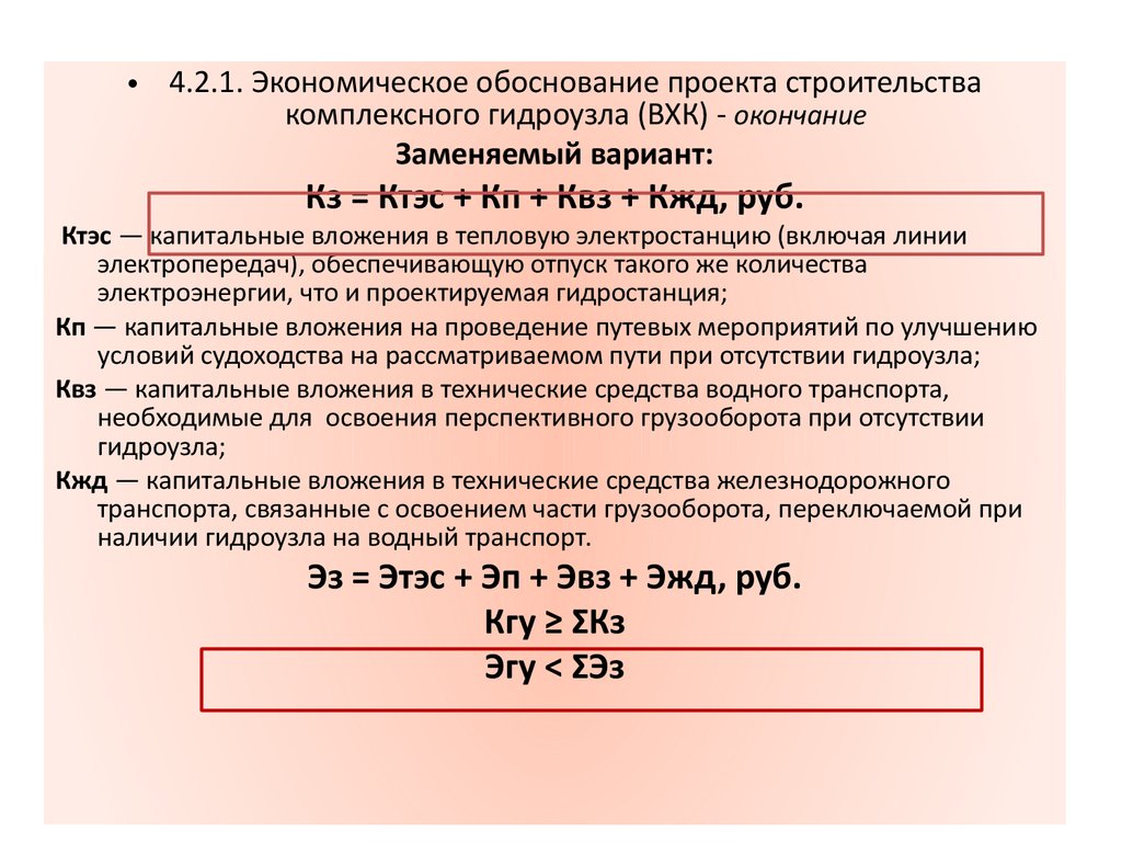 • 4.2.1. Экономическое обоснование проекта строительствакомплексного гидроузла (ВХК) - окончание