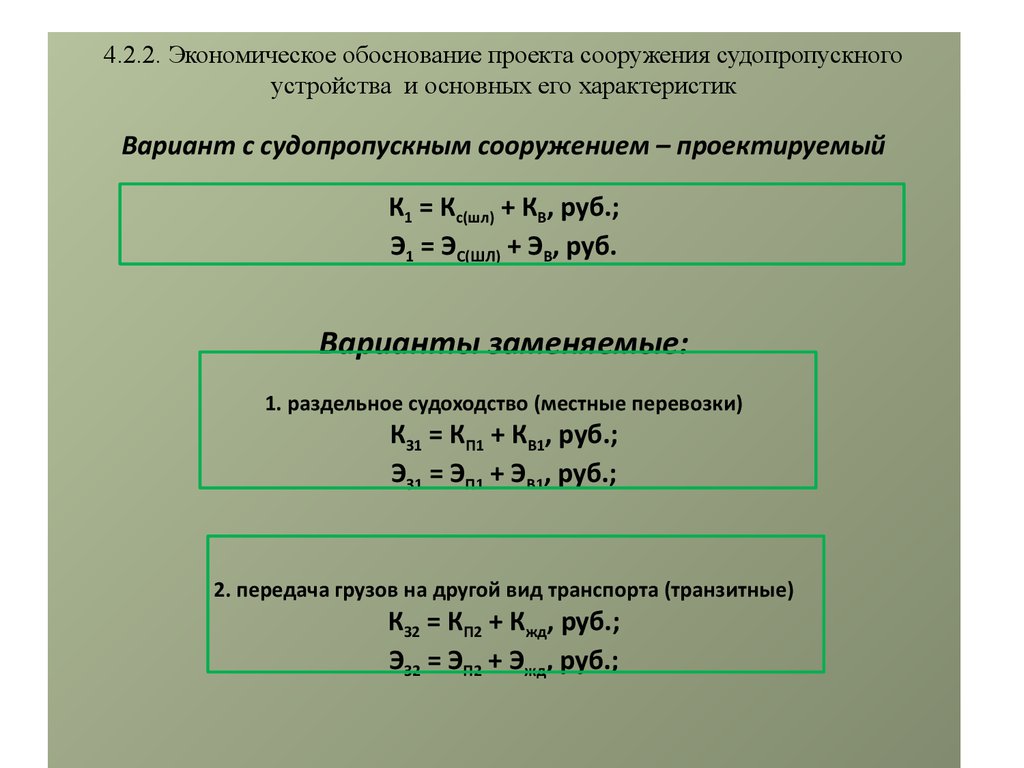 4.2.2. Экономическое обоснование проекта сооружения судопропускногоустройства и основных его характеристик