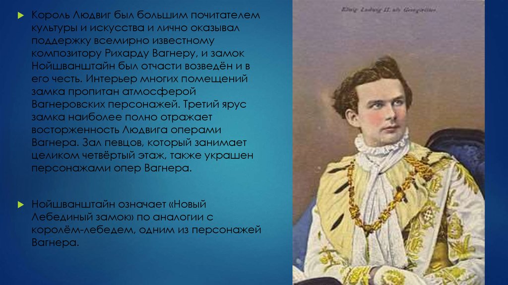 Король Людвиг был большим почитателемкультуры и искусства и лично оказывал