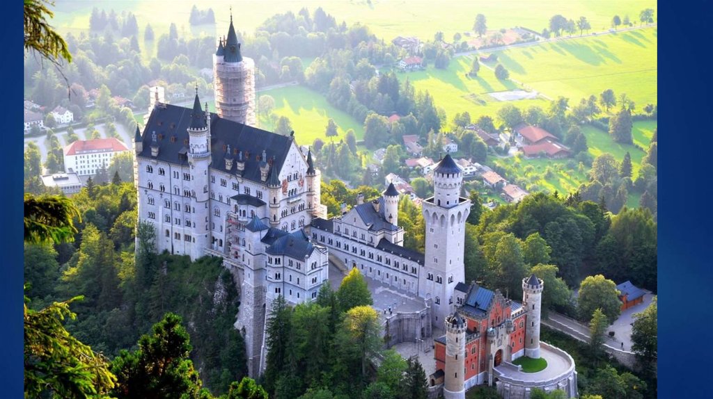 Замок Нойшванштайн ( «Новый лебединый каменный утёс») —романтический замок баварского короля Людвига II около городка